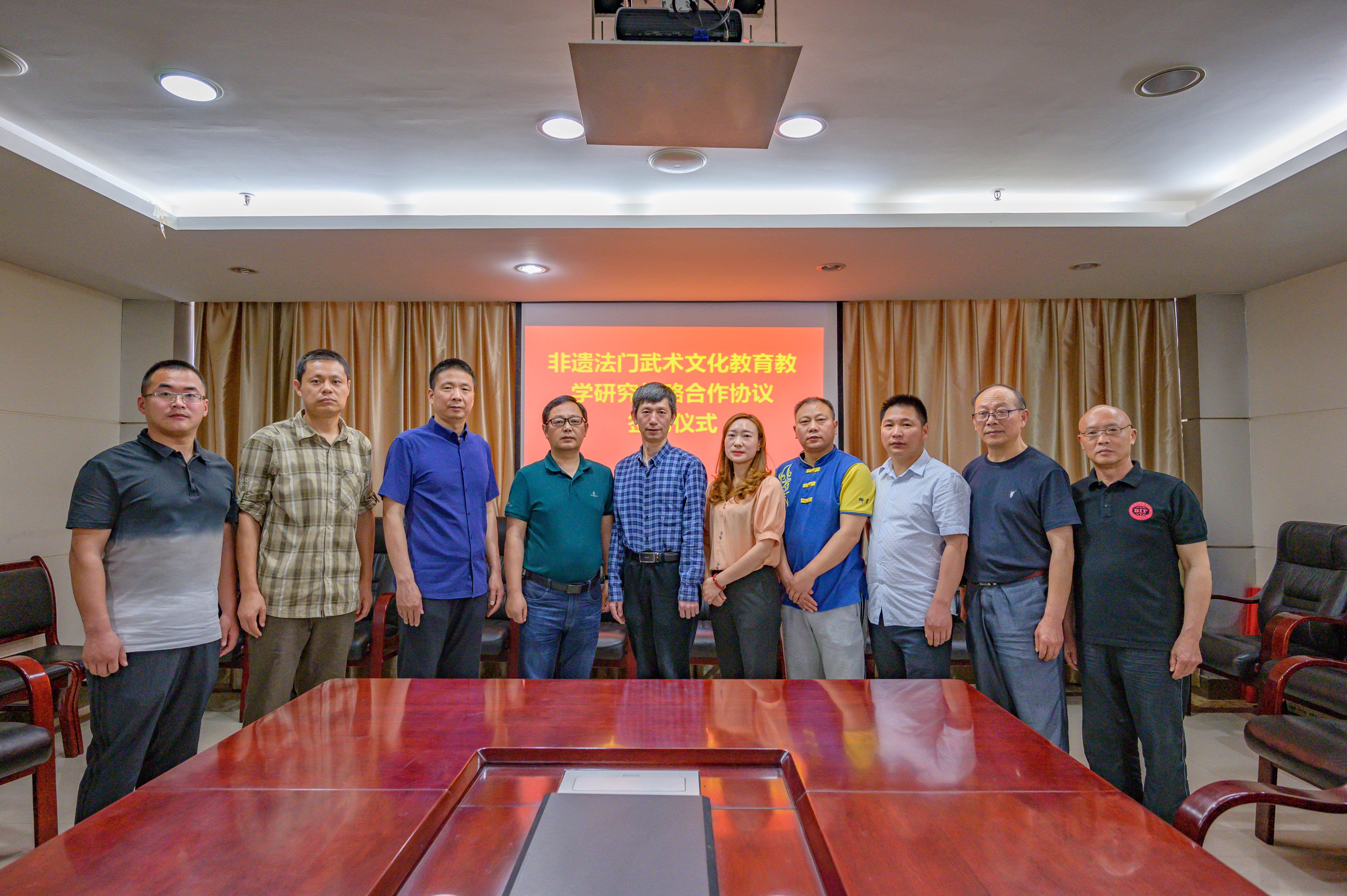 签约仪式上,首先由法门武术研究会会长姚德海介绍了法门武术的发展历史和取得的成绩。接着佘涛经理向与会嘉宾介绍了合作协议的主要内容。最后,由王兆忠致辞并代表tyc122cc太阳成集团与法门武术研究会签署战略合作协议。双方相信通过建立长期稳定的战略合作关系,坚持互学互鉴、共建共享,共同开创武术文化交流的新渠道,搭建武术科研合作、赛事交流、高端武术人才培养、校园传承和社会推广的新平台,共同推进法门武术文化交流、发展。