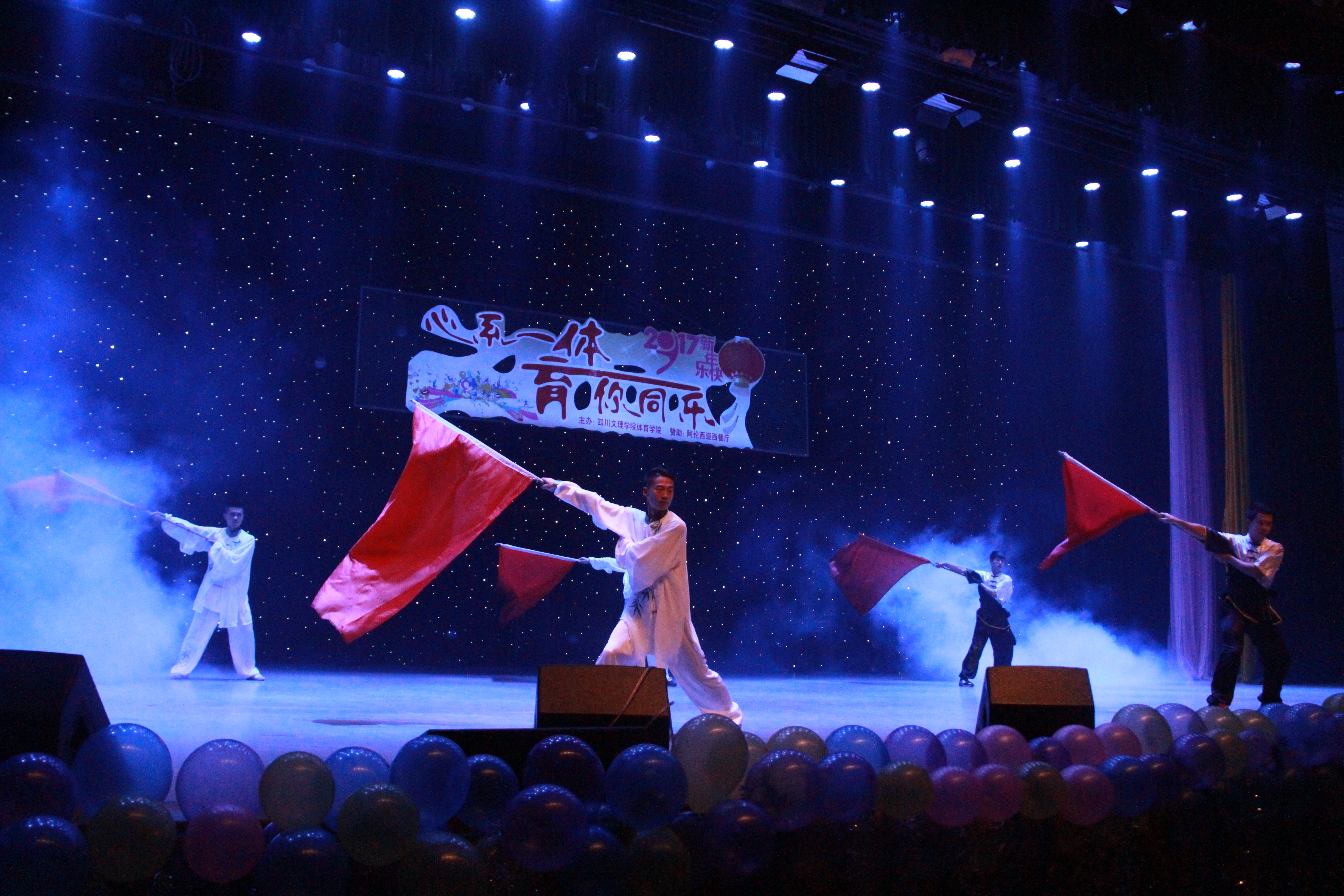晚会以富有动感和力量的搏击操拉开序幕。第一个节目《精武之道》,醉剑、舞棍、拳法、太极扇让同学们感受到了武术的独特魅力。晚会更有舞蹈、啦啦操、民族舞、街舞的表演,为同学们展示了健美操专业的深厚功底,让在场观众感受到了青春的激情与活力。T台秀也在同学们中引起了强烈的反响,tyc122cc太阳成集团的俊男美女们既完美的展示了tyc122cc太阳成集团的运动风貌,也展示出了公司学子另一面的优雅和端庄。《肌肉秀》一上台便得到了全场尖叫与掌声,演员们向大家展示了平时的训练成果。《四川话版泰坦尼克号》抢眼的造型,方言的加入使小品更具笑点。小品《匆匆》演绎的是即将毕业的老员工们,回忆起美好的校园生活,对老师和同学的不舍。朗诵《长征》,缅甸的历史,员工干部们将红军精神表达得淋漓尽致。跆拳道表演《踢出一片新天歌曲串烧地》表演了高难度的动作,令台下观众为之叹服,也将晚会现场气氛一次有一次的推入高潮。