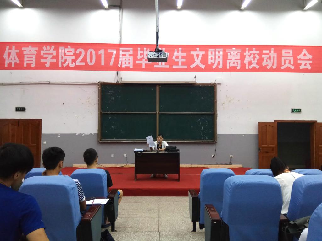 6月9日9:00,公司在一教学楼113教室召开了2017届毕业生文明离校动员大会,党总支副书记王进、学工办主任李霞、辅导员那明明及2017届毕业生参加了会议。