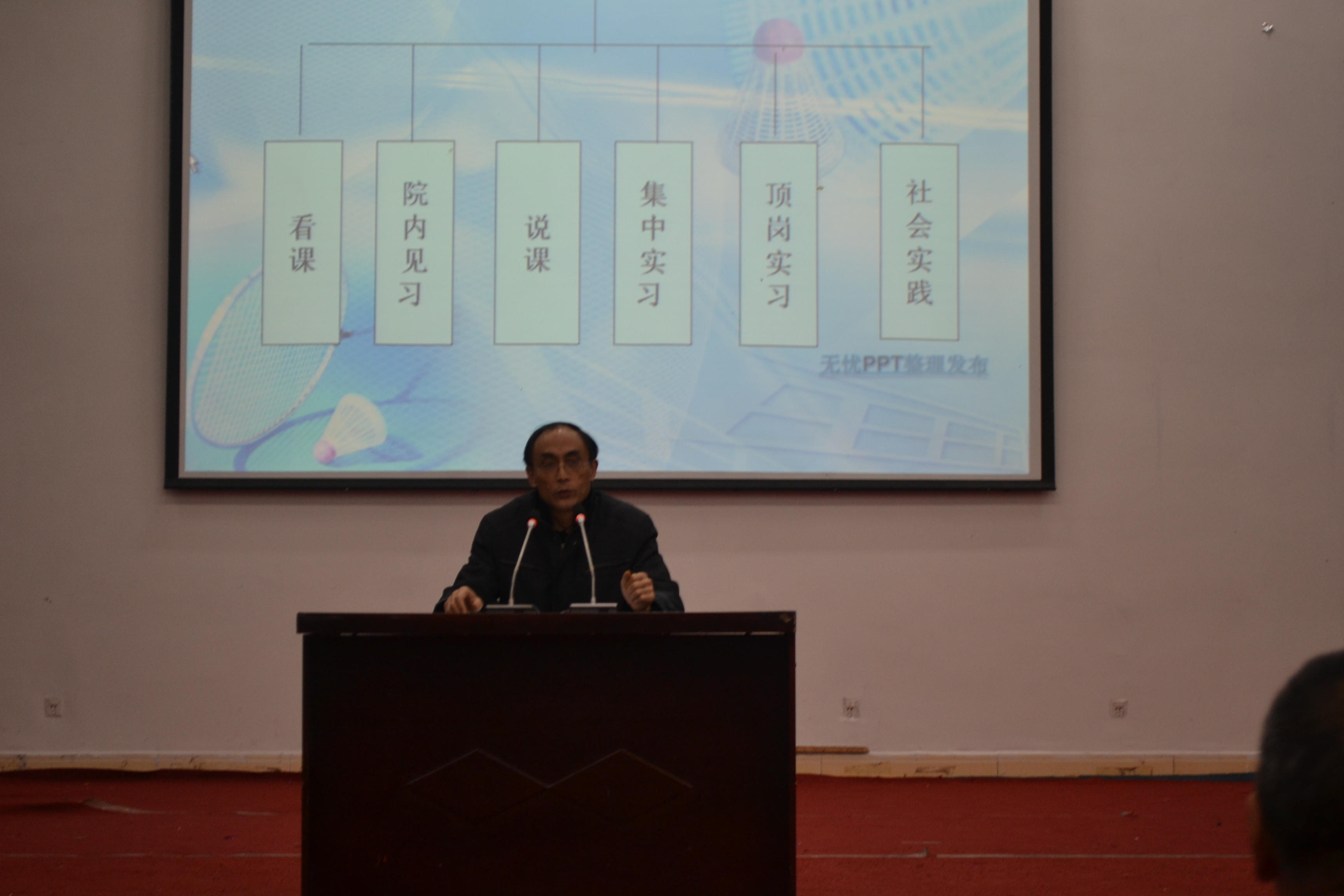 讲座伊始,陈碧述教授简要介绍了实践教学体系的构成及实践教学对员工就业的重要作用。讲座中,陈教授详细讲解了体育系现行的实践教学体系,分析“看课、院内见习、说课、集中实习、顶岗实习、社会实践”重要的实践环节,并结合教学事例,重点针对同学们在实践教学中容易出现的问题,提出解决的策略和建设性的意见。