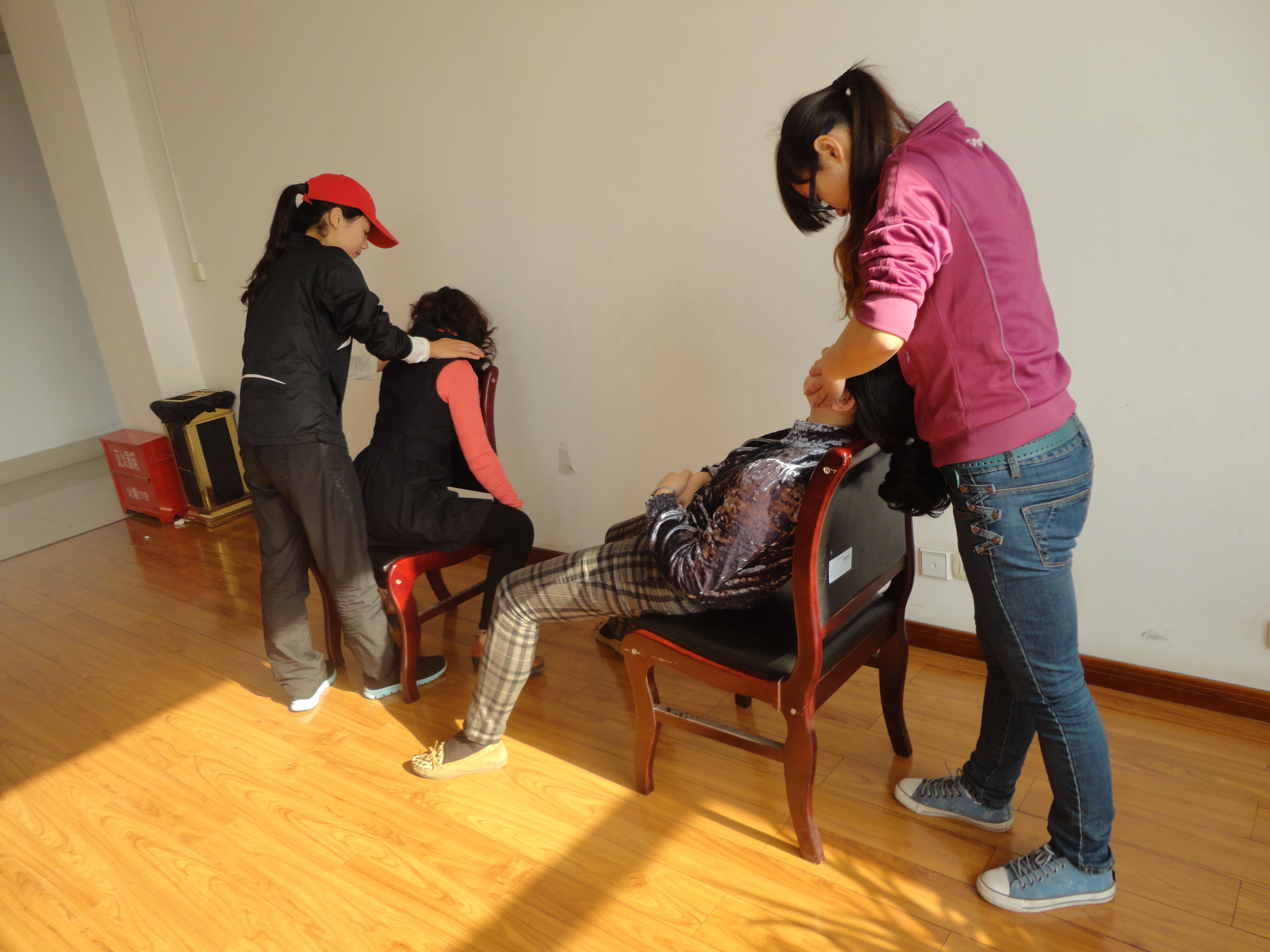 推拿与按摩,是本系特色课程之一,为了搭建教学实践平台,加深员工对这门课程知识的学习和掌握,3月27日9:00,我系2010级38名员工组成志愿服务队,在莲湖校区教学楼一楼和行政楼三、四楼开展了“推拿按摩志愿服务”活动。