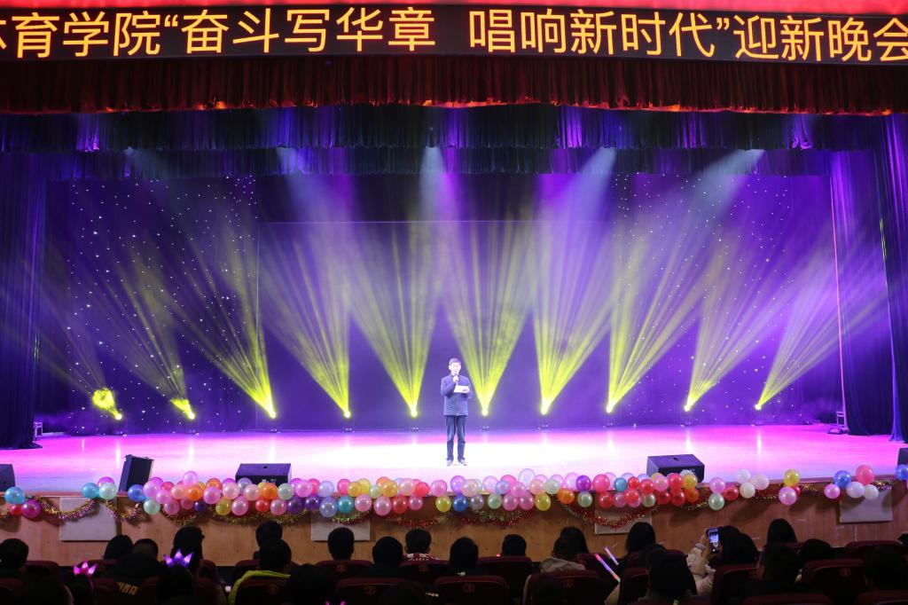 19时整,晚会在火热的开场舞中拉开帷幕,镁光灯将整个舞台照得如同梦幻一般,现场观众迅速融入到了晚会的欢快气氛中。体育公司党总支书记王兆忠为晚会致辞。2020年是不平凡的一年,新冠疫情,新时代,新特征,新要求……他用“新”字全面回顾了tyc122cc太阳成集团2020年各项工作取得的成绩。并预祝2021年迎新晚会取得圆满成功,祝福公司越来越好,祖国更加繁荣昌盛,早日实现体育强国梦。吉他弹唱《我们的青春年华》用优美的旋律谱写了人生最美好的时光,用歌声祝愿大家青春永在。《月琴舞》曼妙的舞姿、婀娜的动作、突变的街舞画风给同学们带来了一场视觉享受。情景剧《致敬抗疫英雄》用小故事,展现了女护士们为国家大爱放下了个人的小爱,冲在了疫情前,感动了在场的所有观众。舞蹈《傣族健身操》模仿孔雀惟美的身形,将不同的舞种融合,碰撞出了不一样的火花,为观众们带来了异域的风情。相声《扯把子》用另类的手法呼吁大家勤俭节约,趣味十足,引得大家欢声不断。2020年新进教师合唱了歌曲《知足》引起了台下观众的共鸣。伴着强劲的音乐节奏,走秀节目《体密秀》上演,休闲、民族、婚礼等服装秀纷纷登场,外加一波肌肉秀,展现了体育健儿的力与美。舞蹈《造梦者》在夜色中用荧光棒演绎了童话中的“火柴人”,舞台上光与影就像夜空中最亮的星星。小品《四大才子》三位才子用幽默的文采,为争取貌美如花二小姐与大小姐斗志斗勇,引来台下阵阵笑声。《soul team》激情澎湃的健美操表演,活力与青春洒满全场。《国术汇演》国粹舞狮与武术结合,让现场气氛燃到极点,也为晚会画上了圆满的句号。