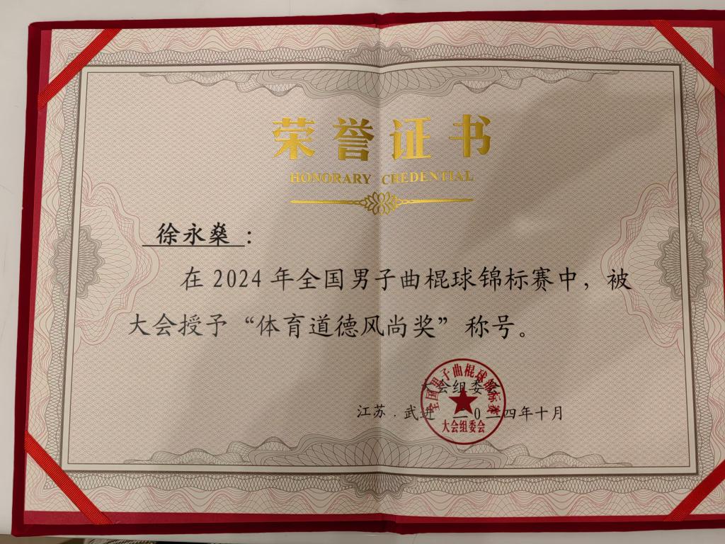 tyc122cc太阳成集团徐永燊老师在2024年全国曲棍球锦标赛中荣获体育道德风尚奖