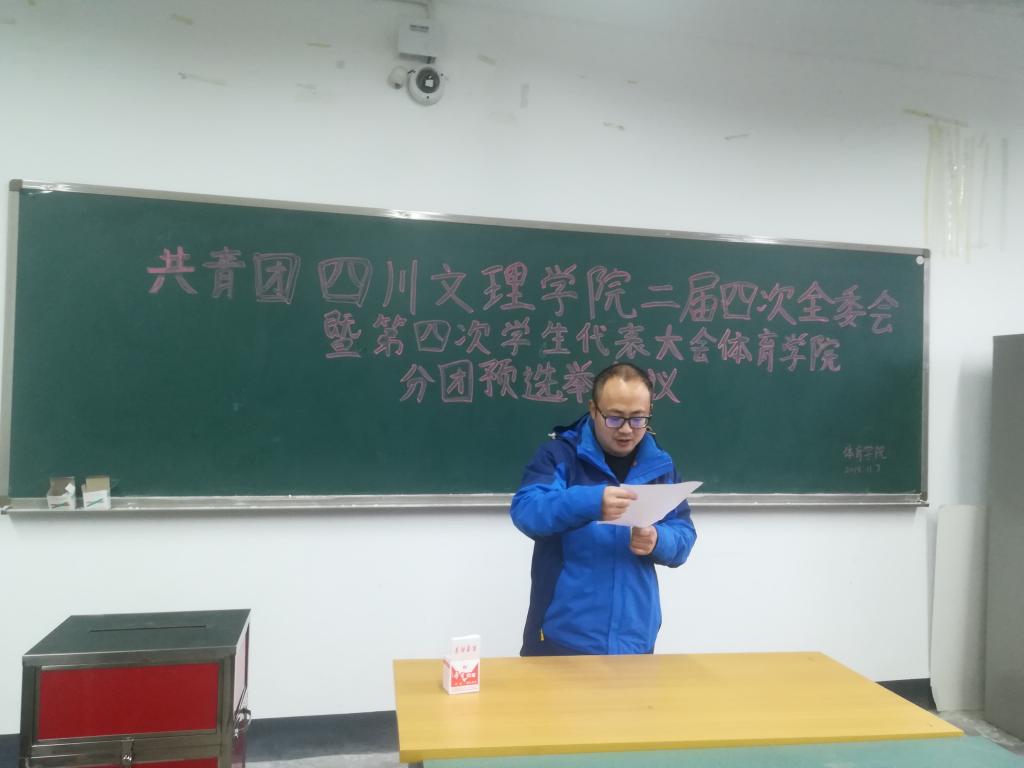 共青团tyc122cc太阳成集团二届四次全委会暨第四次员工代表大会tyc122cc太阳成集团分团预选举会议于11月7日下午4:00在传媒楼3023举行。tyc122cc太阳成集团团总支书记彭波、辅导员崔开文、马思远、12位员工团代表、16位员工学代表以及校团委工作人员参加了此次会议。会议由团总支书记彭波主持。