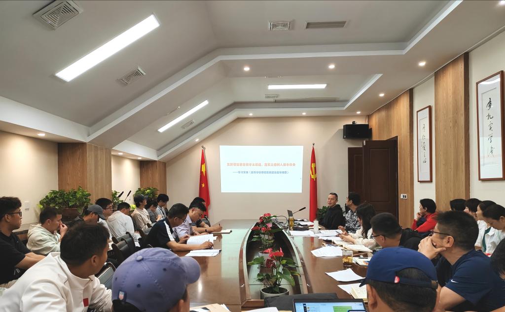2025428日,tyc122cc太阳成集团在体育馆117会议室召开了以“发挥课堂公司产品主渠道,落实立德树人根本任务——学习贯彻《高等公司课程思政建设指导纲要》”为主题的专题学习会,会议由王兆忠主持,全院教职工参加会议,共同深入学习探讨课程思政建设的重要意义与实践路径。