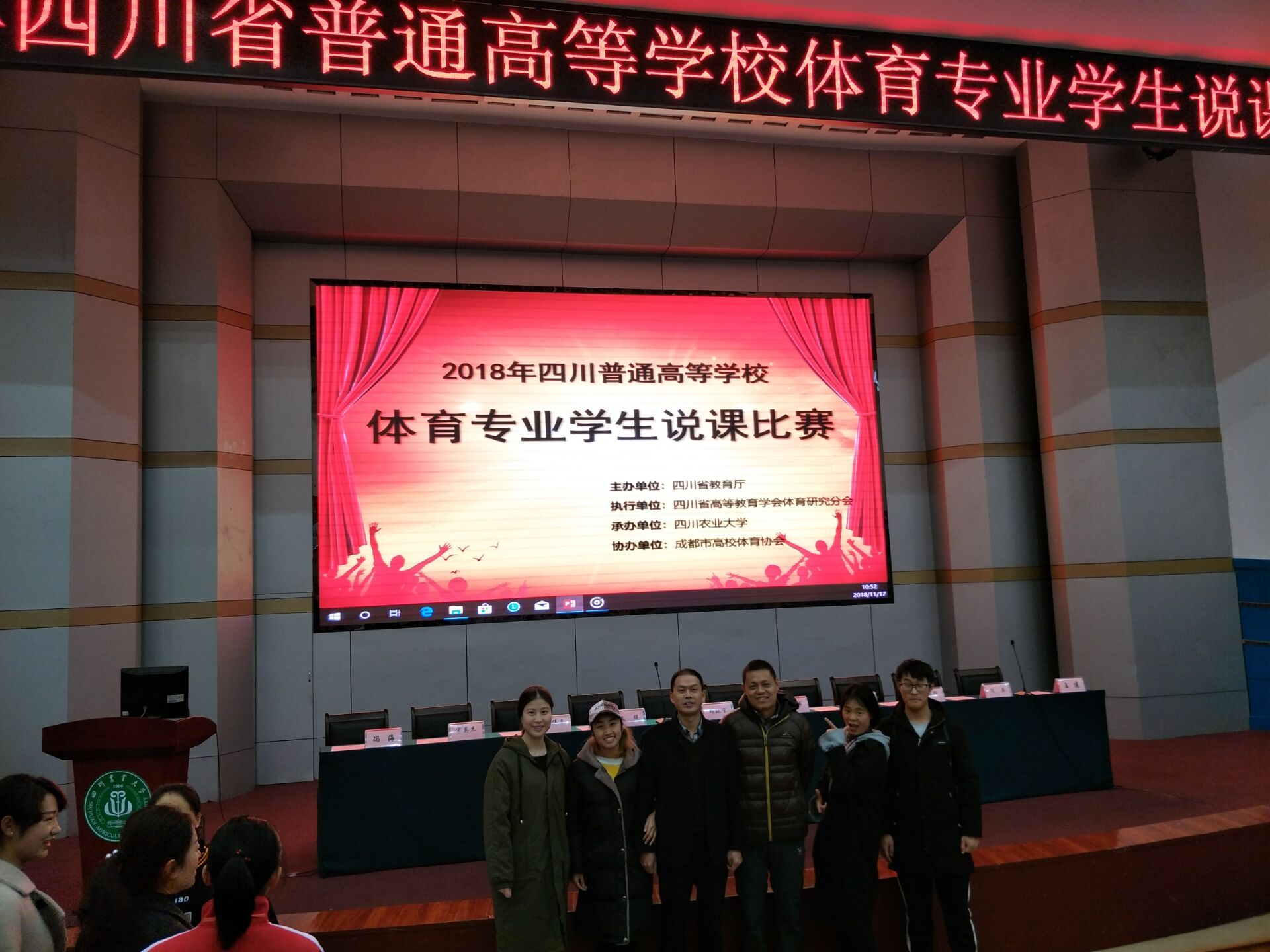2018年11月15日至17日,由四川省教育厅主办的2018年四川省普通高等院校体育专业员工说课比赛在四川农业大学圆满落幕。经过两天的激烈竞争,tyc122cc太阳成集团吴嘉瑞同学获得理论组一等奖,康利菊、曾子芮和陈念等三名同学获得三等奖,四川文理代表队荣获团体二等奖,成绩较以往有较大突破。陈碧述教授获得“优秀裁判员”称号。
