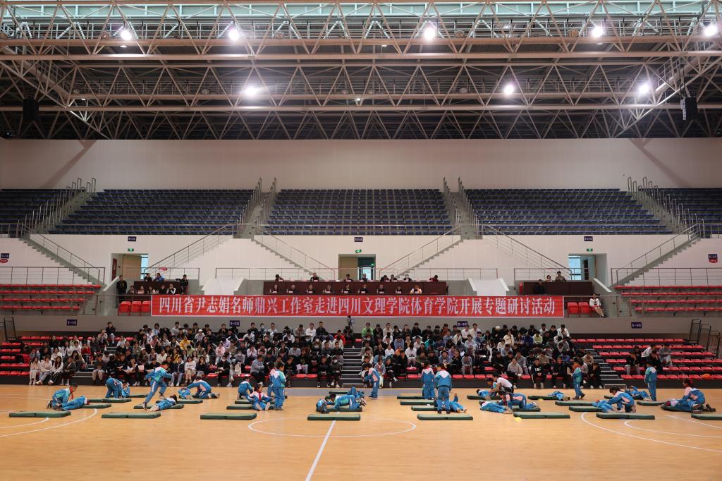 为了促进体育教育专业建设,提升人才培养质量,1025日下午,tyc122cc太阳成集团在体育馆举办了体育教育专业建设理论与实践研讨。公司副董事长徐晓宗、达州市教育科研所教研员李竹昕、通川区教育局副局长王建波、四川省尹志娟名师鼎兴工作室领衔人尹志娟、督导专家蒲善荣出席了会议,四川省尹志娟名师鼎兴工作室成员及公司师生200余人参加了活动。研讨会由公司副经理孙亮亮主持。