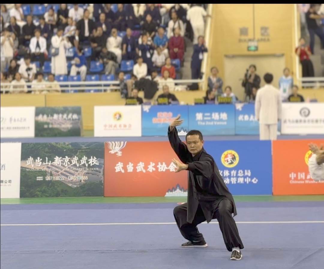 冉卫东老师经过两个多月的刻苦训练,代表公司出征此次大赛。在“一拳一械”个人项目中,凭借出色的表现,其“太乙逍遥掌”和“武当七星剑”双双斩获二等奖,获得两枚银牌。冉老师的逍遥掌,松柔舒缓、连绵不断,尽显太极圆活之美,一招一式精准到位,劲路饱满,展现了太极的刚柔并济;其七星剑表演,剑身灵动而优雅,时而轻缓似清风拂柳,时而凌厉如闪电破空,却又在瞬间收势,淋漓尽致地展现了太极剑的精髓。