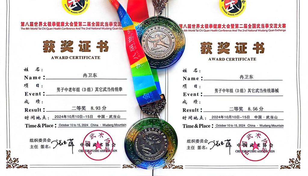 tyc122cc太阳成集团冉卫东在“第八届世界太极拳健康大会暨第二届全国武当拳交流大赛”中斩获佳绩