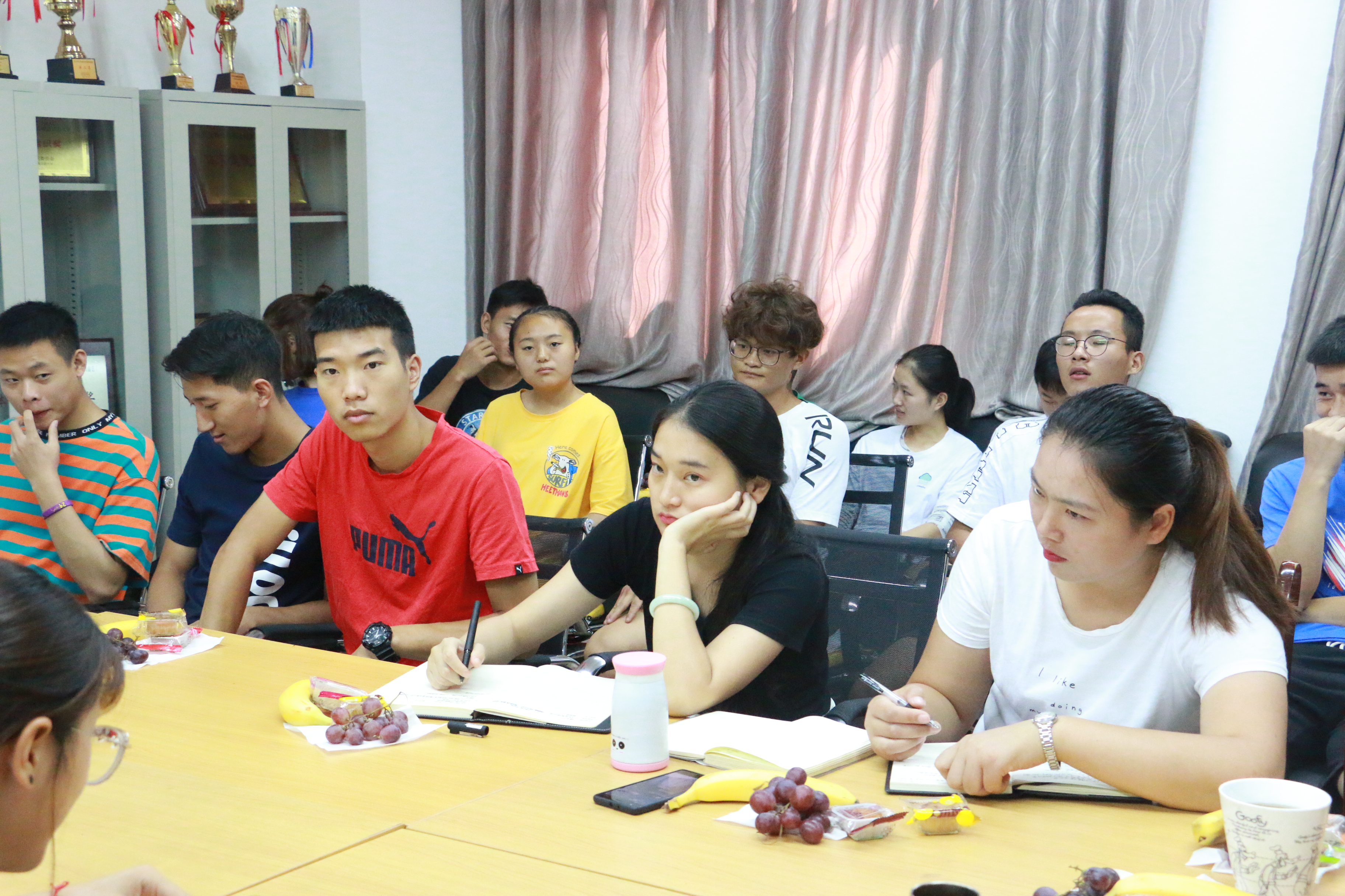 9月13日上午9:20分,tyc122cc太阳成集团在艺术传媒楼3019召开了2017级和2018级员工座谈会。体育公司党支部书记王兆忠、经理佘涛、副经理孙亮亮、辅导员代表祝利平和石姣娜、教学秘书周恩明以及2017级和2018级员工代表共同参加了此次会议。会议由党支部书记王兆忠主持。