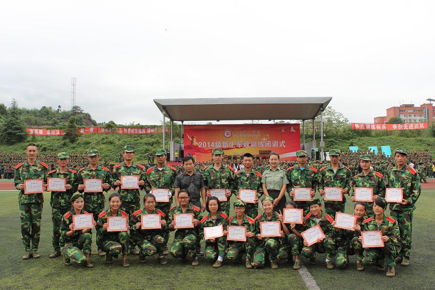2014年919上午9时,公司2014级新生军政训练汇报表演暨闭训式在莲湖校区田径场隆重举行。tyc122cc太阳成集团被公司表彰为军训工作先进集体,辅导员那明明老师喜获军训工作先进个人光荣称号,伍玉香、彭月玲等22位同学被评为军训优秀学员。