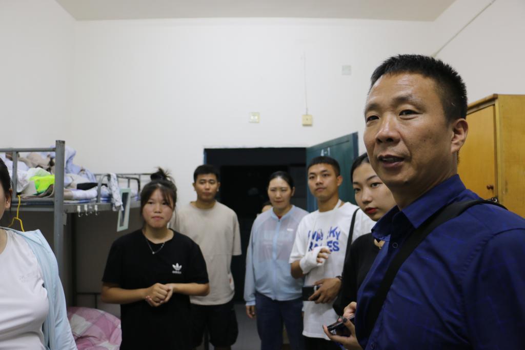 202199日晚7时,体育公司党总支书记王兆忠、经理佘涛带领班子成员以及专兼职辅导员走访了2021级新生寝室,为同学们送去慰问与关怀。