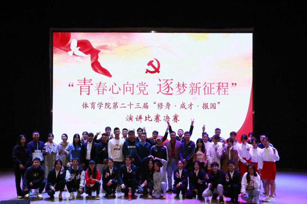 经过层层选拔,一共有13位选手闯入本次决赛,决赛以“青春心向党,逐梦新征程”为主题。作品《向党于心,逐梦于行》讲述了在党的领导下,中国人民顽强拼搏、奋勇前行的艰苦过程;《点燃青春之火,成就辉煌人生》展现了残奥会身残志坚打破残奥记录的精神;《功崇惟志,业广惟勤》讲述了燃灯董事长张桂梅的故事;《我的成长》讲述了学习中国女排遇挫折仍顽强拼搏的精神;等等。同学们的演讲从不同层面诠释了修身、成才、报国,表达了体院学子青春心向党、逐梦新征程的信心和决心。比赛中,选手们饱满的精神,充沛的感情,激昂的语言,娴熟的技巧,赢得了台下观众的阵阵掌声,将比赛推向了一个又一个高潮。最终20217班聂雨欣脱颖而出荣获第一名。