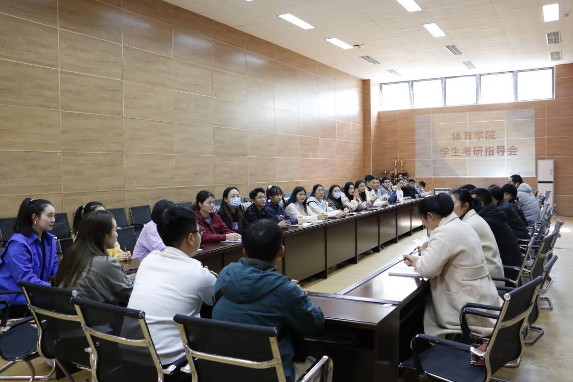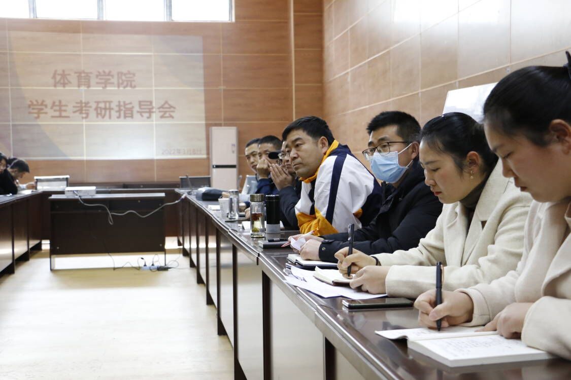 38日,tyc122cc太阳成集团在体育馆附馆105召开考研员工指导会。体育公司经理佘涛,党总支副书记彭波,副经理孙亮亮,组织员卫洪春,党政办公室主任樊永强,学工办主任祝利平,专任教师盛佳智,辅导员石姣娜以及22位考研员工参加了本次座谈会。会议由祝利平主持。