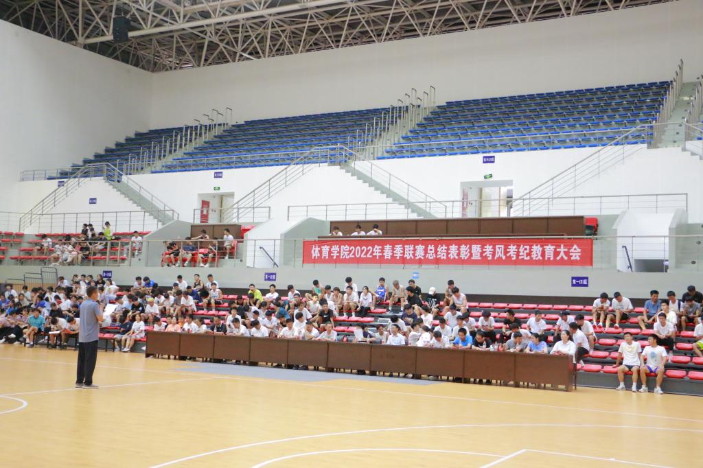 20226117:00,tyc122cc太阳成集团在体育馆举行2022年春季联赛颁奖仪式。体育公司党政领导、党政办、教学科研办、体质测试中心、场馆中心、学工办、部分专项老师以及全体修业班员工参加此次仪式。