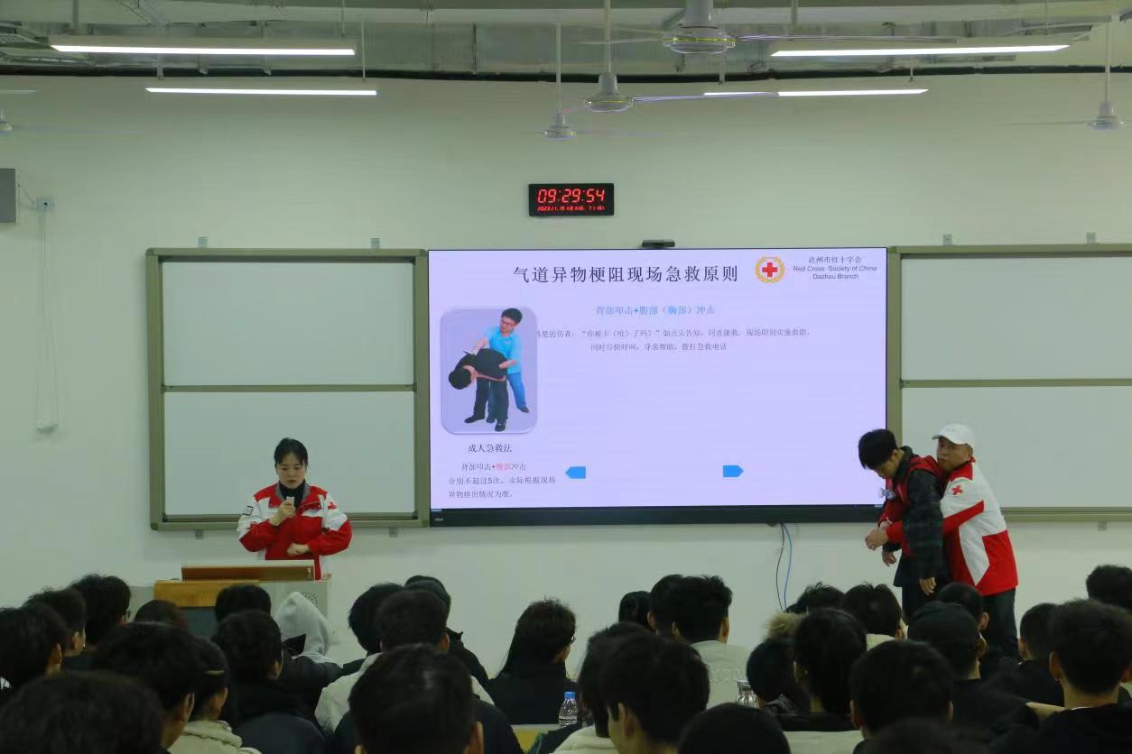 本次培训邀请到达州市红十字会七名救护团队为学员们培训,通过线上学习、理论讲解+实操演练的形式为大家进行专业培训。