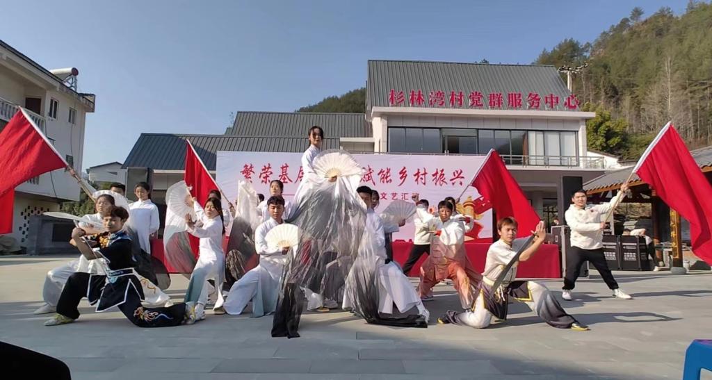 公司高度重视,就万源石塘镇杉林湾村托底帮扶志愿活动顺利推进举行了专题会议,确定了参演方案、节目及负责人,并提出了“确保安全,确保质量”的要求。武术教研小组随即行动起来,选拔队员,组织排练。111日,tyc122cc太阳成集团武术队正式前往万源市石塘镇杉林湾村开展了“繁荣基层文化,赋能乡村振兴”的传统体育文化展演。本次活动由李波老师带队,由杨慧、蒲黔蜀等20名员工参与。