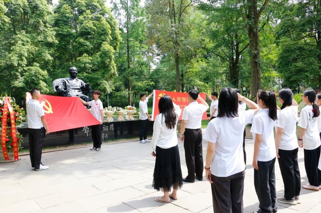追寻伟人足迹,走进小平故居。全体党员跟随讲解员来到邓小平同志铜像前进行了庄重的缅怀仪式,靳浪带领全体师生党员在铜像广场重温了入党誓词。随后来到邓小平故居陈列馆,里面陈列着大量的图片资料和珍贵的文物,生动展示了邓小平的革命生涯和卓越贡献。饮水思源,缘木思本,团队一行又来到小平同志的母校——四川省广安中学开展现场研讨,党员师生围绕小平同志主要事迹和青年党员如何强化使命担当展开讨论。陈佳林同志说:“在本次研学活动中,我深刻体会了邓小平同志的生平事迹和思想精髓,将以更加积极的态度面对工作和生活中的挑战,以实际行动履行使命与担当。”其他员工党员也纷纷表示作为新时代的青年党员应继承和发扬邓小平同志的革命精神,勇于担当、敢于创新、坚定信念、不忘初心!