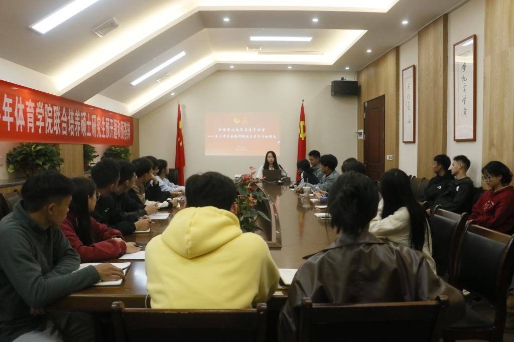 2024 11 7 18:50,团总支在体育馆 117 会议室召开了青马班第一期“青马燎原”宣讲会,青马工程培训班学员蒲黔蜀担任主讲人,tyc122cc太阳成集团全体团学干部参加宣讲。